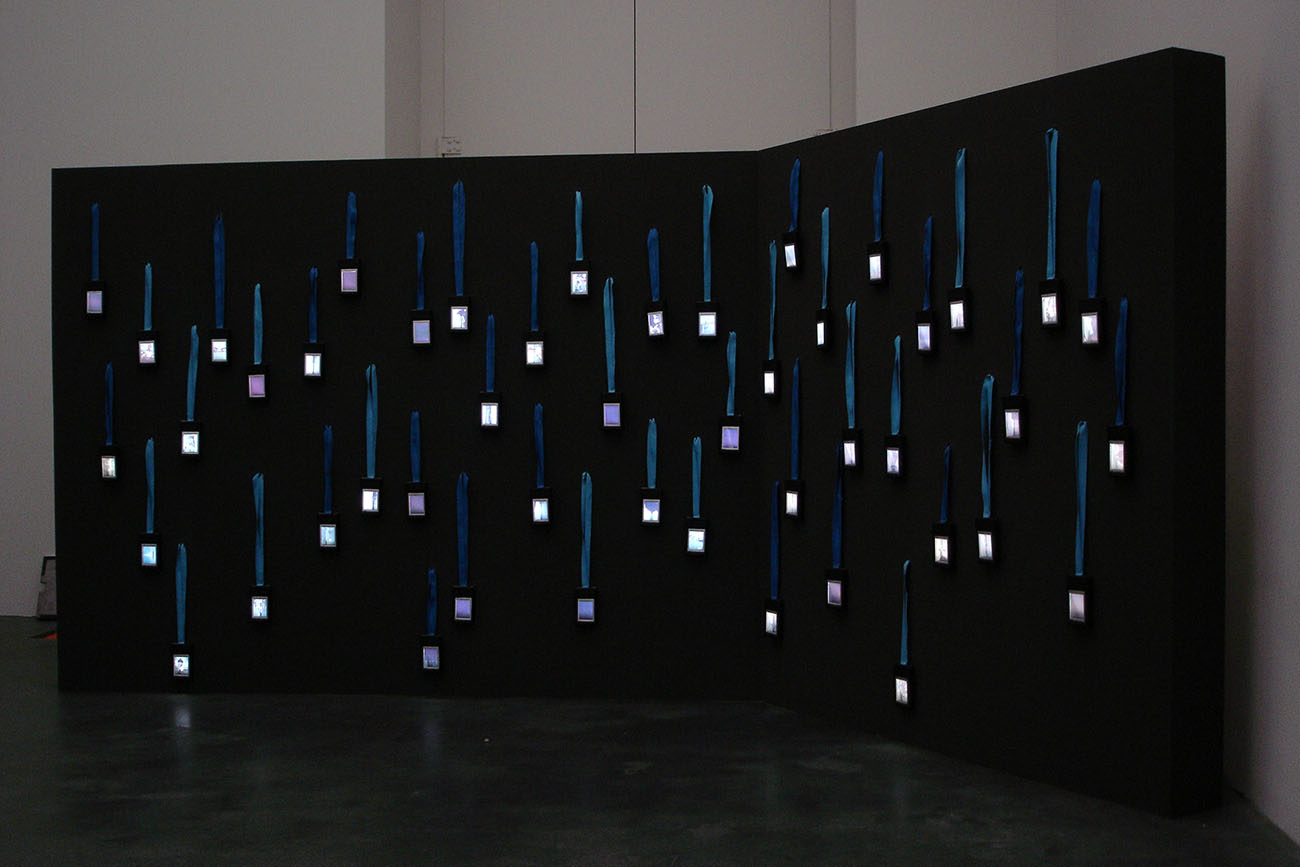 Der Vierwaldstättersee ist das beliebteste Gewässer der Schweiz und wird jährlich von mehr als zwei Millionen Touristen aus aller Welt besucht. Unzählige Fotografien werden gemacht und der See breitet sich in Form von abgespeicherten Touristenbildern rund um den Erdball aus – als zentrales Bildmotiv oder lediglich als Hintergrund einer Portraitaufnahme. «iLake» stellt diese touristischen Ansichten vom Vierwaldstättersee ins Zentrum; in einer Rauminstallation können sie auf kleinen Displays betrachtet werden. Der Vierwaldstättersee – selbst ein gigantischer Speicher – glitzert und leuchtet in einer Vielzahl von Bildpunkten aus Speichermedien von Digitalkameras und repräsentiert sich gleichsam als synthetische Momentaufnahme eines kollektiven Imaginationraums.